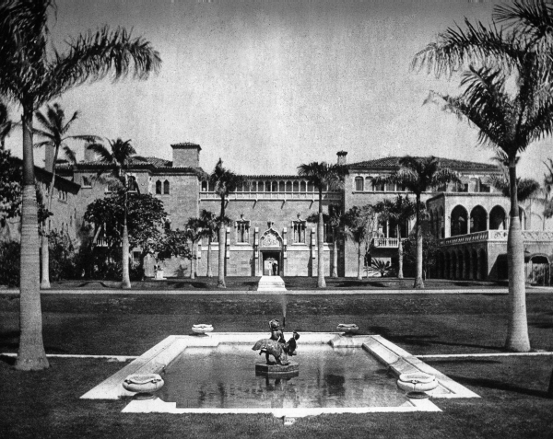 Palm Beach Public School is where David attended grade school. Back then, there were 3 grade schools on the island; Palm Beach Public, Palm Beach Day, and Graham Eckes. Graham Eckes is no longer in existence. Parents of local children, though, speak fondly of their experience going to grade school at Graham Eckes. That school’s property was subdivided to make room for more houses. For David to get to the Public school, he would have to cross a trestle carefully because underneath was where gators liked to rest. Back in the earlier half of the 20th Century, Palm Beach had way more wilderness than one could think possible. That local ecosystem didn’t last long with the influx of Northerners seeking a warm new start after the Depression era. Adison Mizner was the hippest architect money could buy. Huge estates, usually named starting with either “casa” or “playa”, boasting immense gardens and elaborate pools were built spanning the ocean to intracoastal. One of the most unfortunate events to happen to the old culture of Palm Beach occurred in the 1950’s. Family money ran out and heiresses could no longer afford the extravagant houses they’d been living in. For example, Playa Riente[3] owned by Mrs. Dodge was razed in 1957. Nor could anyone else. The estate furnishings were sold at auction and the beautiful Mizner properties were knocked to the ground and subdivided. A few Mizner properties still exist, and bits and pieces of his famous Mizner Industries tiles can be spotted scattered throughout town.